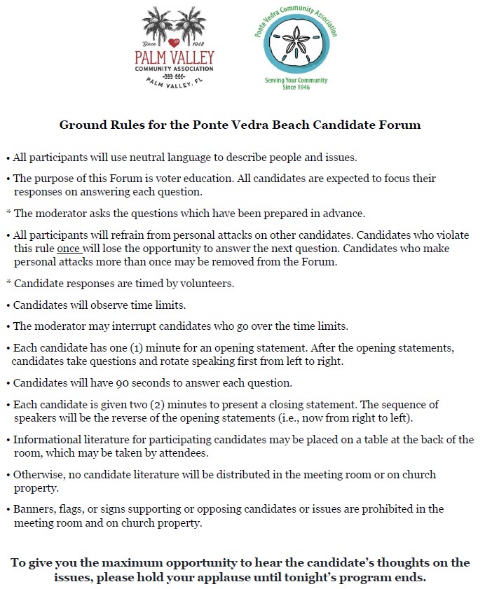 Today, the day after the Forum, there was a Facebook post crying foul that the Candidate Forum host set the rules to the advantage of the incumbents because the challengers were not allowed to mention or refute other candidates on the stage. [Scroll to the bottom of this post to read the rules.] There are two problems with crying foul…